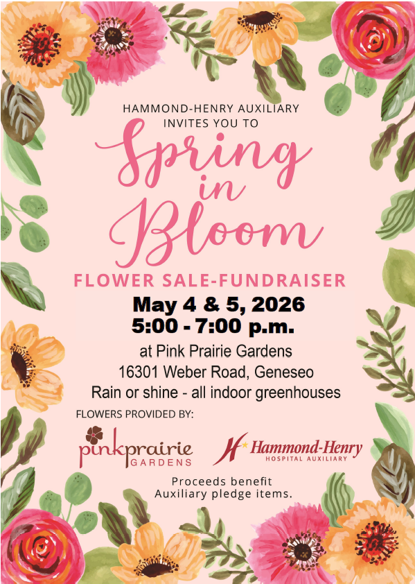 Hammond-Henry Auxiliary- Flower Sale Tuesday, May 5, 2026 5:00 PM 7:00 PM 17:00 19:00 Pink Prairie Gardens 16301 Weber Road Geneseo, IL, 61254 United States (map) Google Calendar ICS