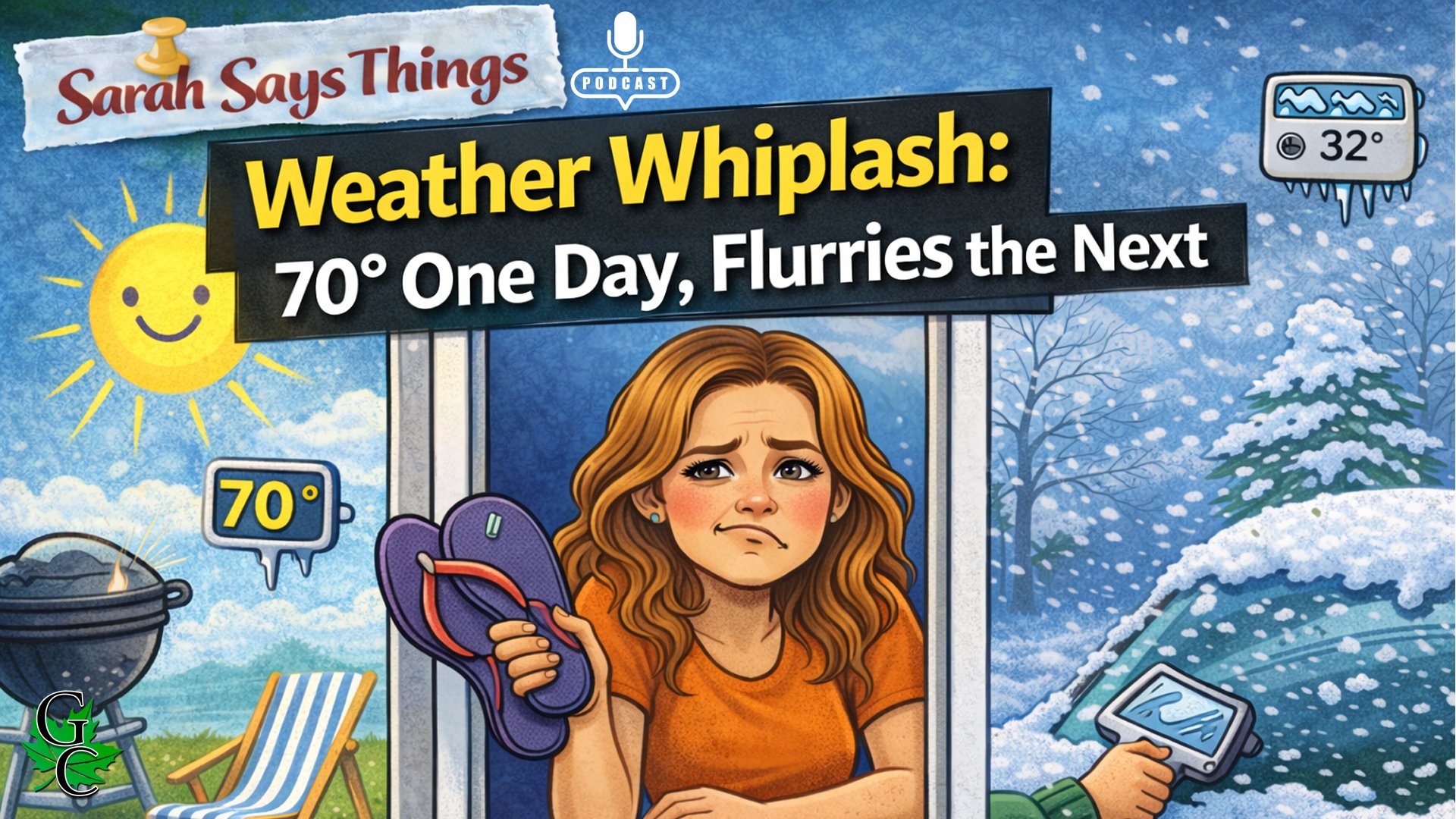 Sarah Says Things Podcast: Weather Whiplash - 70 One Day, Flurries the Next March 13, 2026 Dalcon DeMaranville
