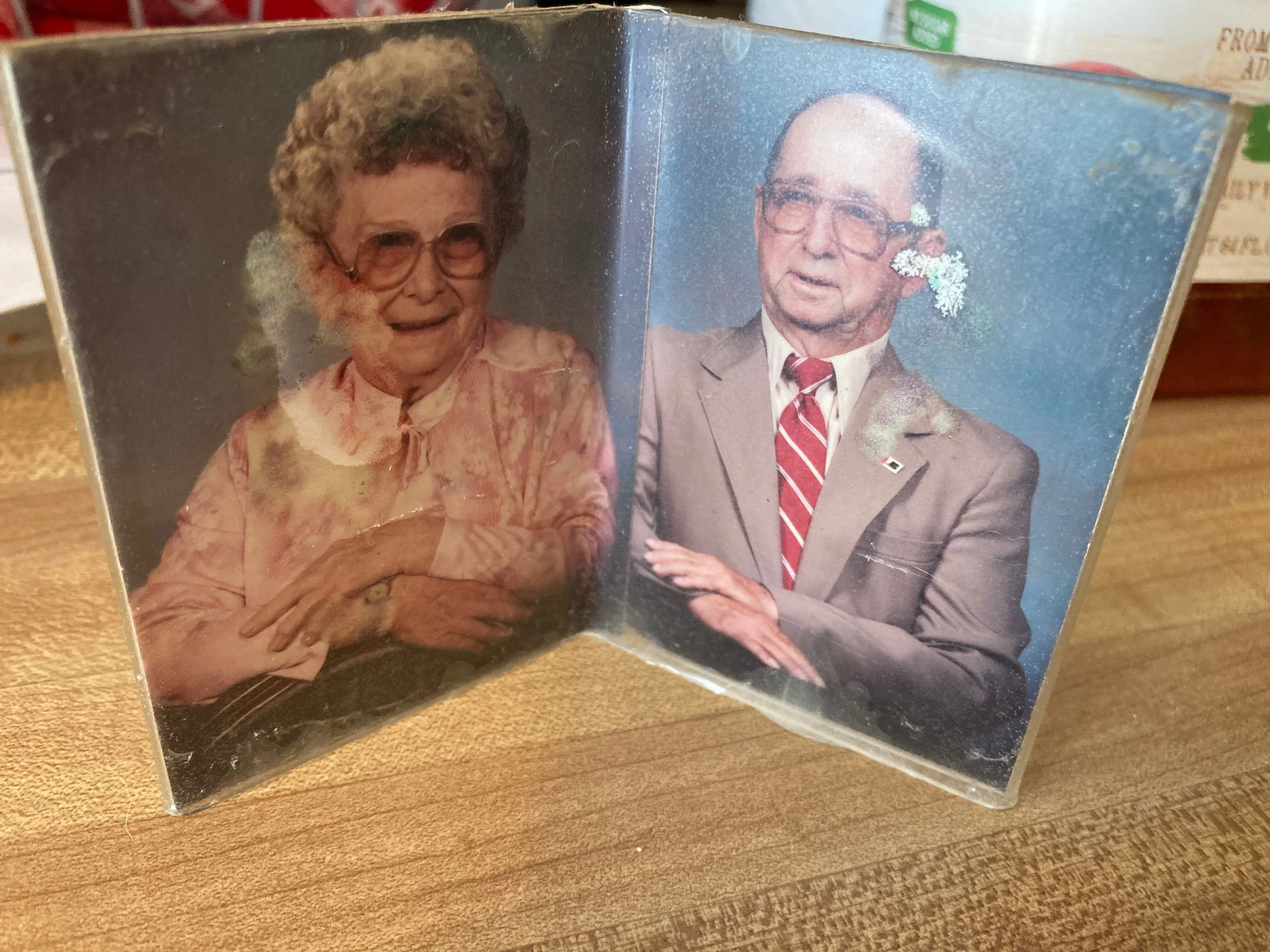 Browning has a photo of her grandparents, the late Eleanor and George Ross. It was her grandmother who, with Browning, sketched the “Green Machine” character. Photo by Claudia Loucks