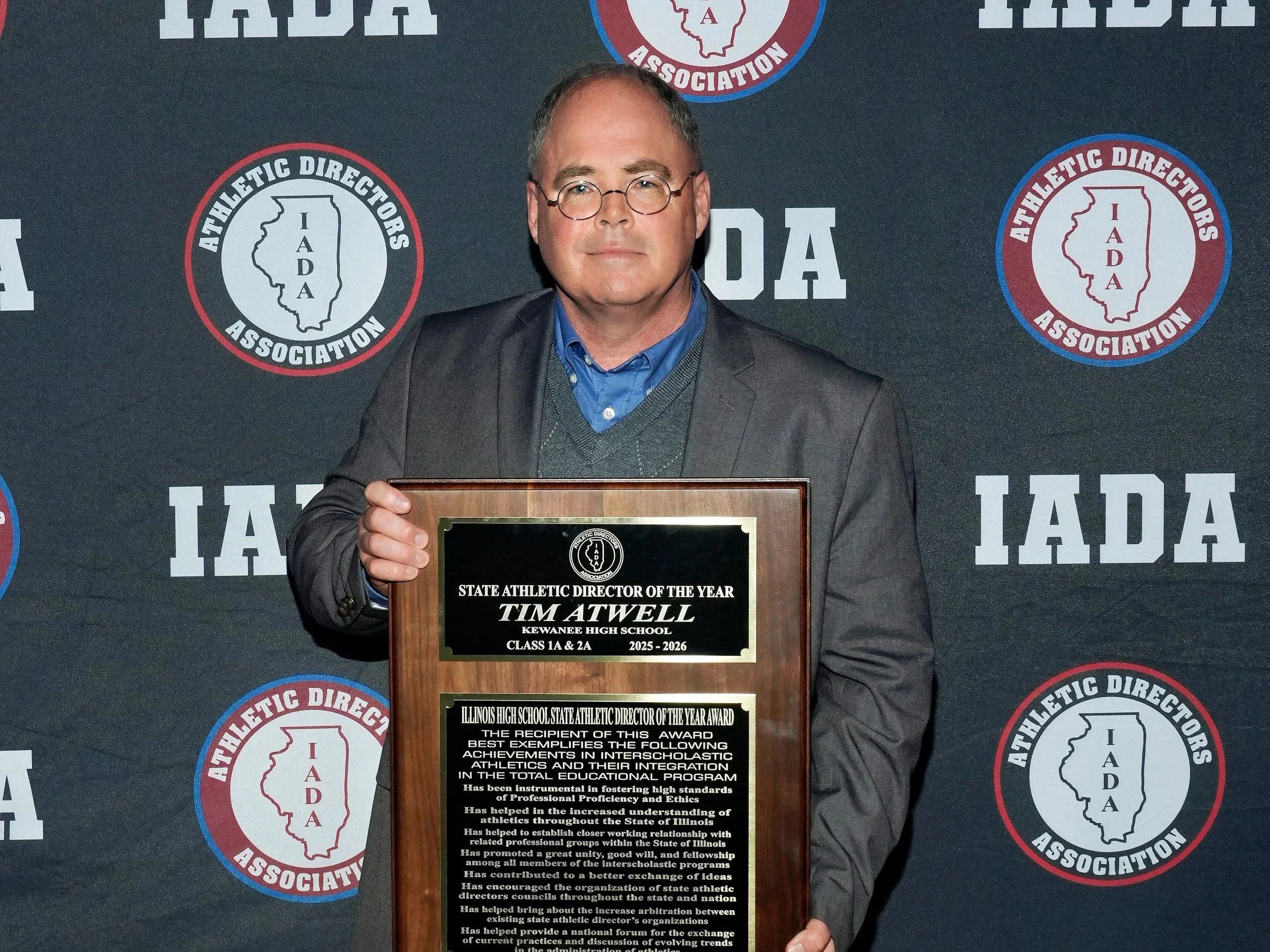 Tim Atwell, athletic director at Kewanee High School, recently was named “Class 1A & 2A State Athletic Director of the Year” by the Illinois Athletic Directors Association (IADA).