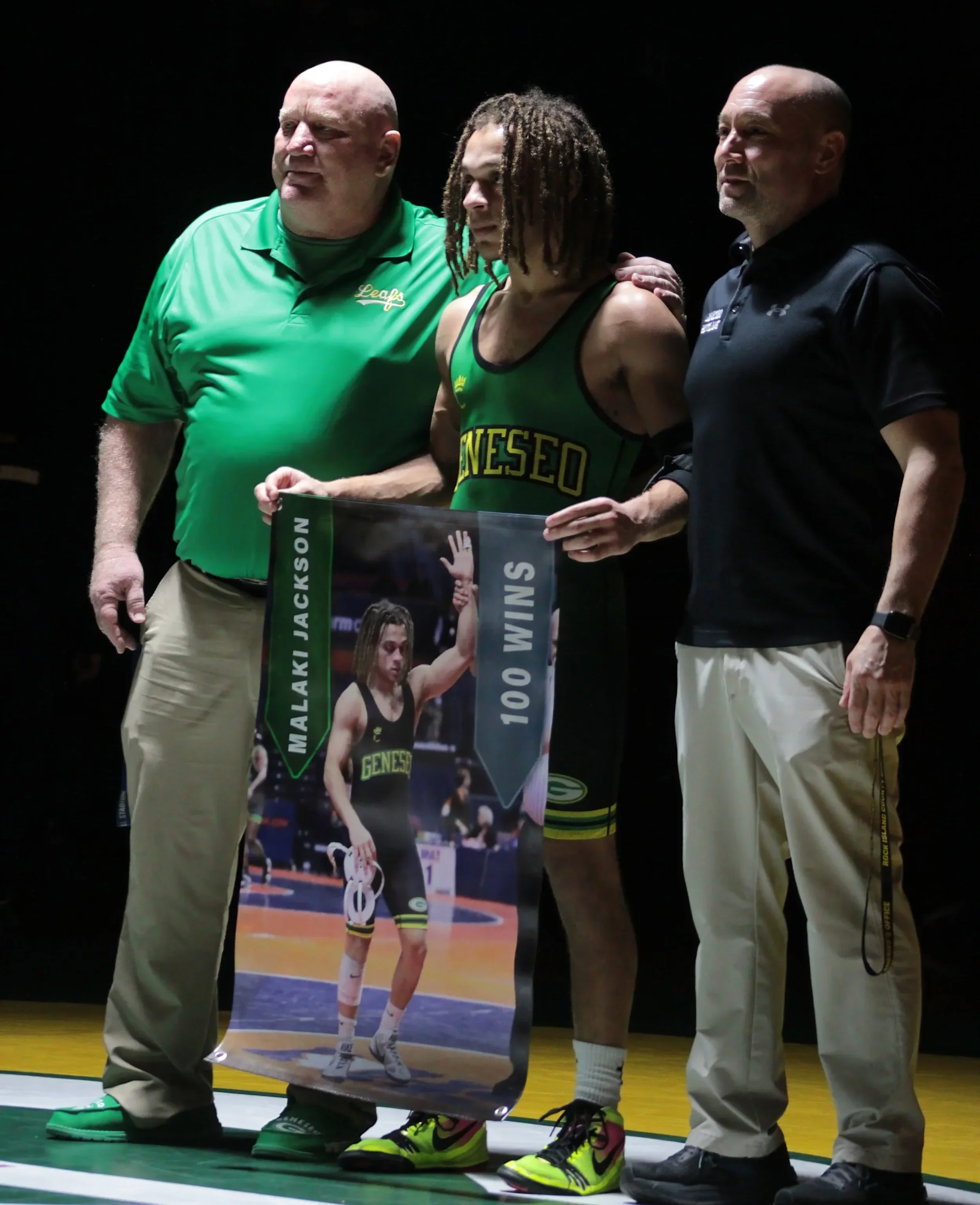 Geneseo High School wrestler Malaki Jackson reached 100 wins at a tournament held in Hinsdale and he commented, “It was a very tough tournament, but I had an ordinary match and I try to treat all my matches the same and not let the anxiety get to me.”