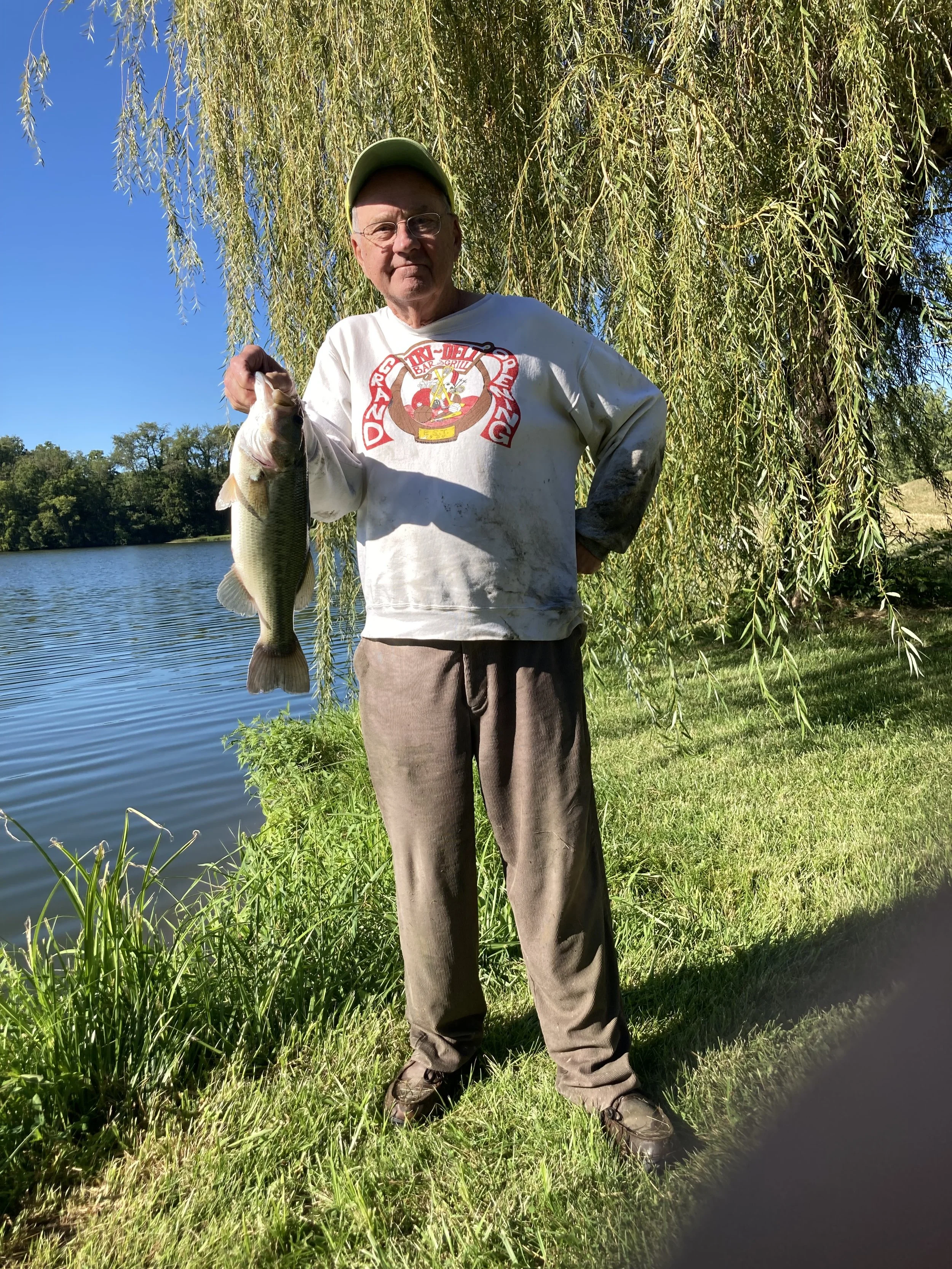 It was a beautiful morning on September 1st when Gary Dahlquist and I ventured out to a private lake for some fishing. Most of the bluegills and bass we caught were small. We’ll, that is “most” of them. Gary was casting for crappies and bass and was some distance from where I was at. A few minutes later he walked to where I was and showed me a 17” - 4 pound largemouth. That’s the good part! The not-so-good part was he tried to grab the fish with his hands, but slipped on a rock and joined the big bass’s territory. Gary was very waterlogged, to say the least. His billfold and cell phone got a nice soaking. We still had a good time, but by around 10 a.m. the fish decided to take a breather. We had enough for a meal so homeward bound we went. Next time we take a landing net.