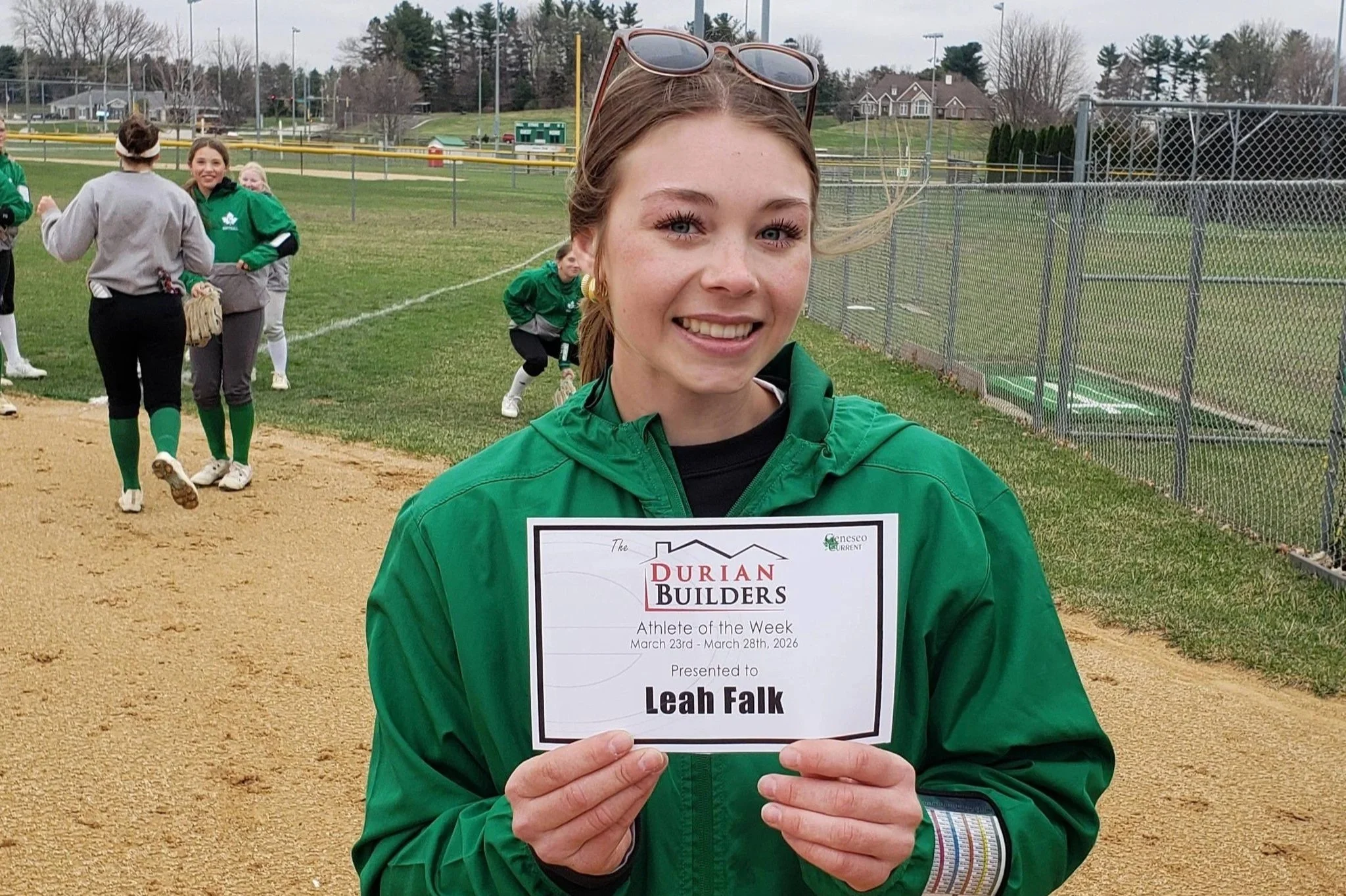AOTW: Jaylee Brudos Wins Durian Builders Athlete Of The Week! 03/23 - 03/28 April 9, 2026 Geneseo Current Staff Leah Falk Congratulations to Leah Falk on winning the Durian Builders Athlete Of The Week! Leah went 3-3 with 2 homers & 5 RBI in the Lady Leafs 15-0 win over Princeton! 2026 Lady Leafs Softball